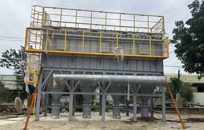 含粉塵的氣體,經過濾袋,粉塵被滯留在濾袋之外,使乾淨的空氣排於大氣中,為維持固定的過濾風量及壓差,每排濾袋必須斷續的以壓縮空氣噴射,逆洗方式以震落附著於濾袋外側之粉塵,使其掉落在儲存室內,因此可維持長時間之運轉,而不需停機清理。